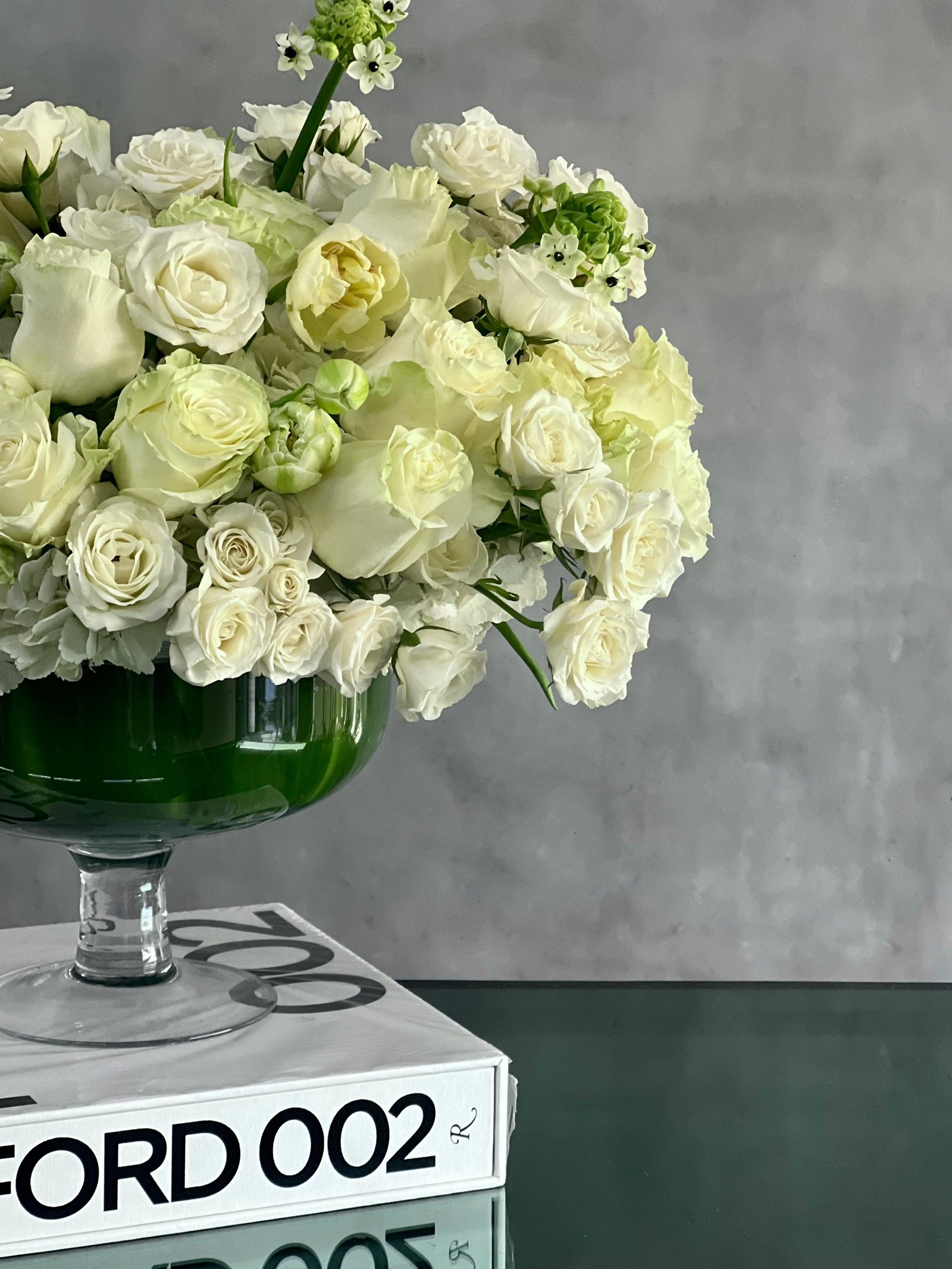 Capture The Heart is a breathtaking display of purity and elegance, featuring a stunning variety of white roses and seasonal flowers arranged in a classic pedestal vase. This 14-inch Deluxe 22-Inches round arrangement exudes grace and sophistication, making it the perfect gift for sympathy, anniversaries, or any occasion where a touch of timeless beauty is needed. Available for same-day delivery by Beverly Hills Florist, this exquisite design offers a serene and heavenly way to express your deepest sentiments.
