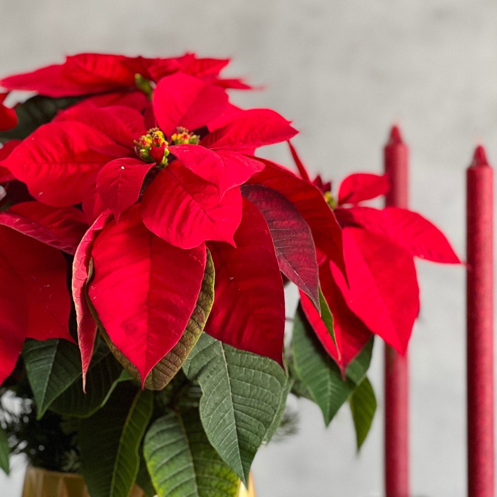Bring the joys of the holidays into your home or office with Christmas Joy, a stunning specialty arrangement. Featuring a gorgeous poinsettia plant paired with delightful holiday greens and presented in a modern gold pot, this arrangement is the perfect decoration for the season. Standing approximately 16″ tall, it’s an ideal gift to send holiday wishes or to add festive charm to any space. Available for same-day delivery by Beverly Hills Florist.