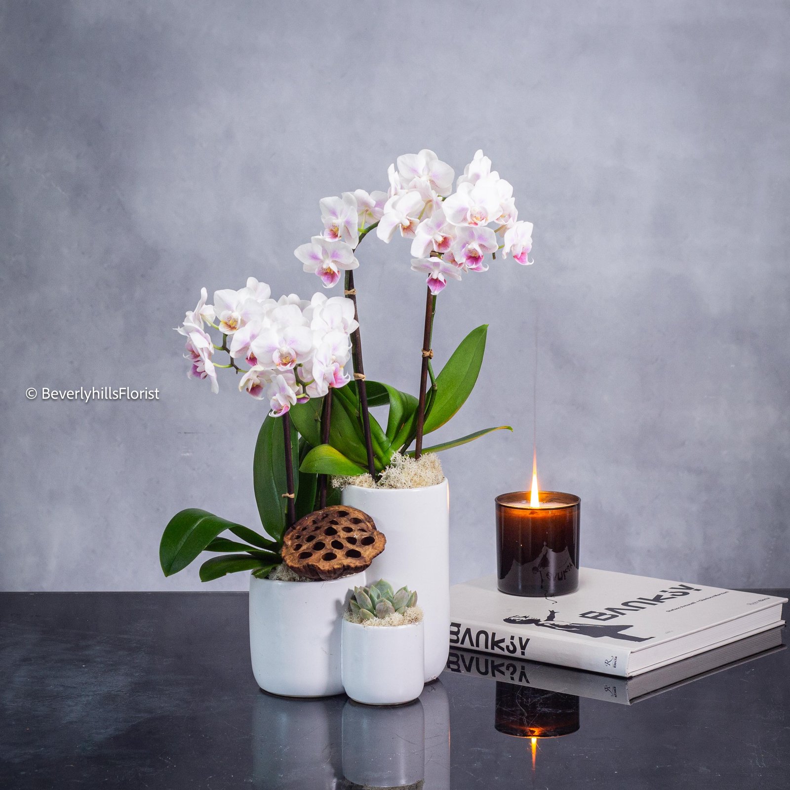 Step by Step Orchid Arrangement is a sight to behold, nestled within a layered ceramic vase. The orchid’s delicate blooms cascade gracefully from one level to the next, creating a stunning visual effect. The sophisticated design exudes a sense of elegance and artistry, making it a captivating centerpiece for any space.